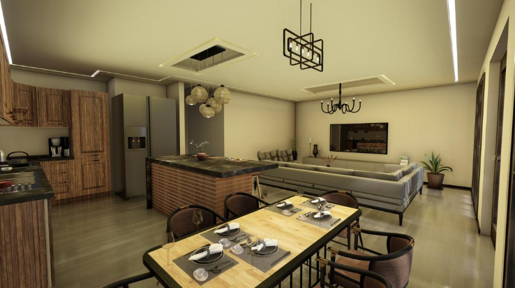 The picture below shows how the spaces look in this ADU. As you can see, the ADU floor plan creates a warm and spacious environment for living. Natural materials have been used to create this space, which lowers construction costs. The open space can also be used for different purposes such as office space in the future.