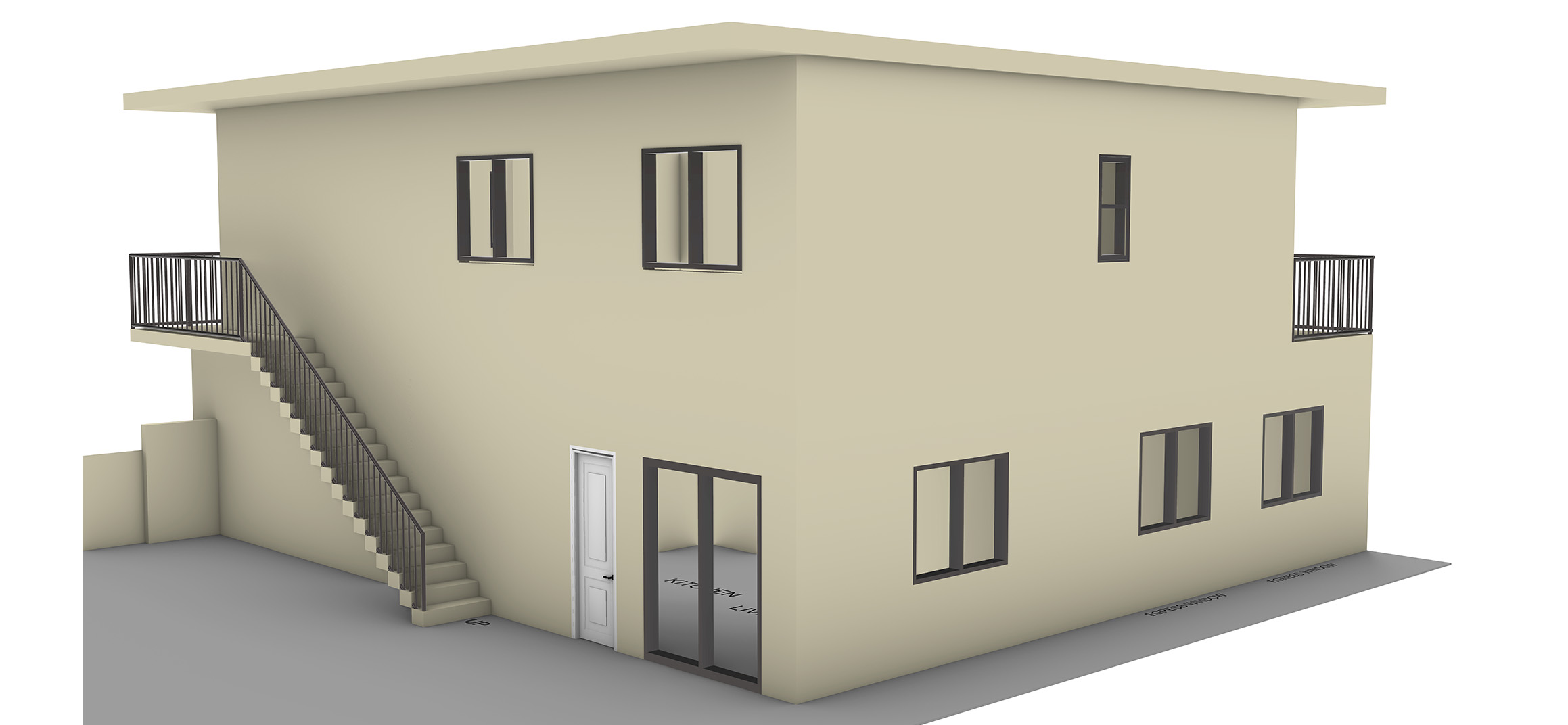 The new ADUs are designed with a stucco exterior finish in a light beige color, giving the structures a clean, warm, and contemporary appearance that blends well with the surrounding neighborhood. Circulation areas, balconies, and green pockets around the ADUs are planned to provide natural light, ventilation, and visual openness.