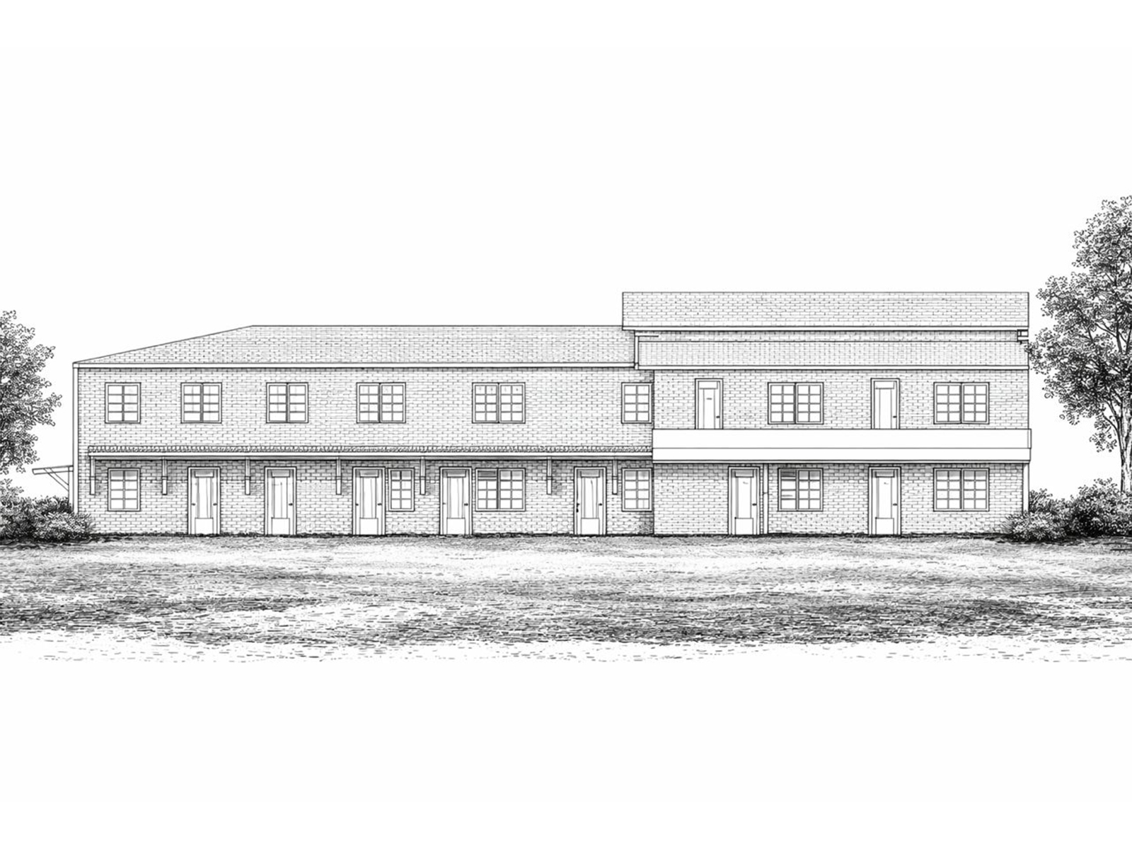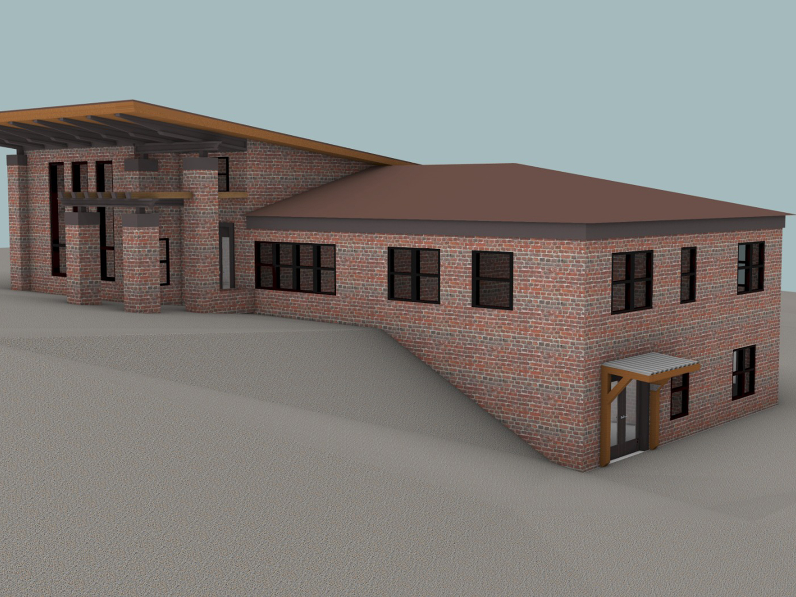 The entire facade of the house was redesigned, including the application of new brickwork. This alteration significantly transformed the exterior, giving the building a fresh, contemporary look that aligns with its new purpose as a service center.