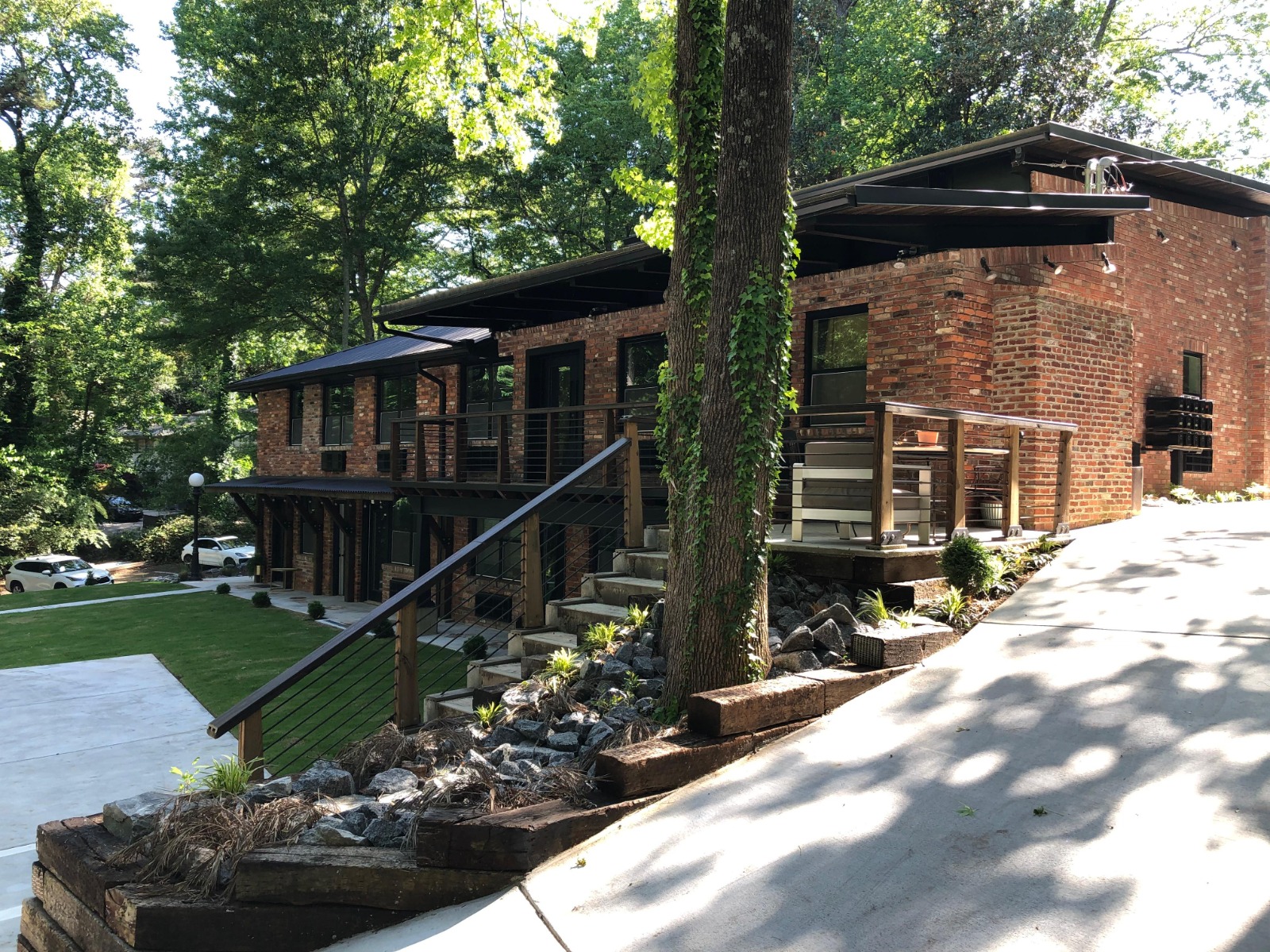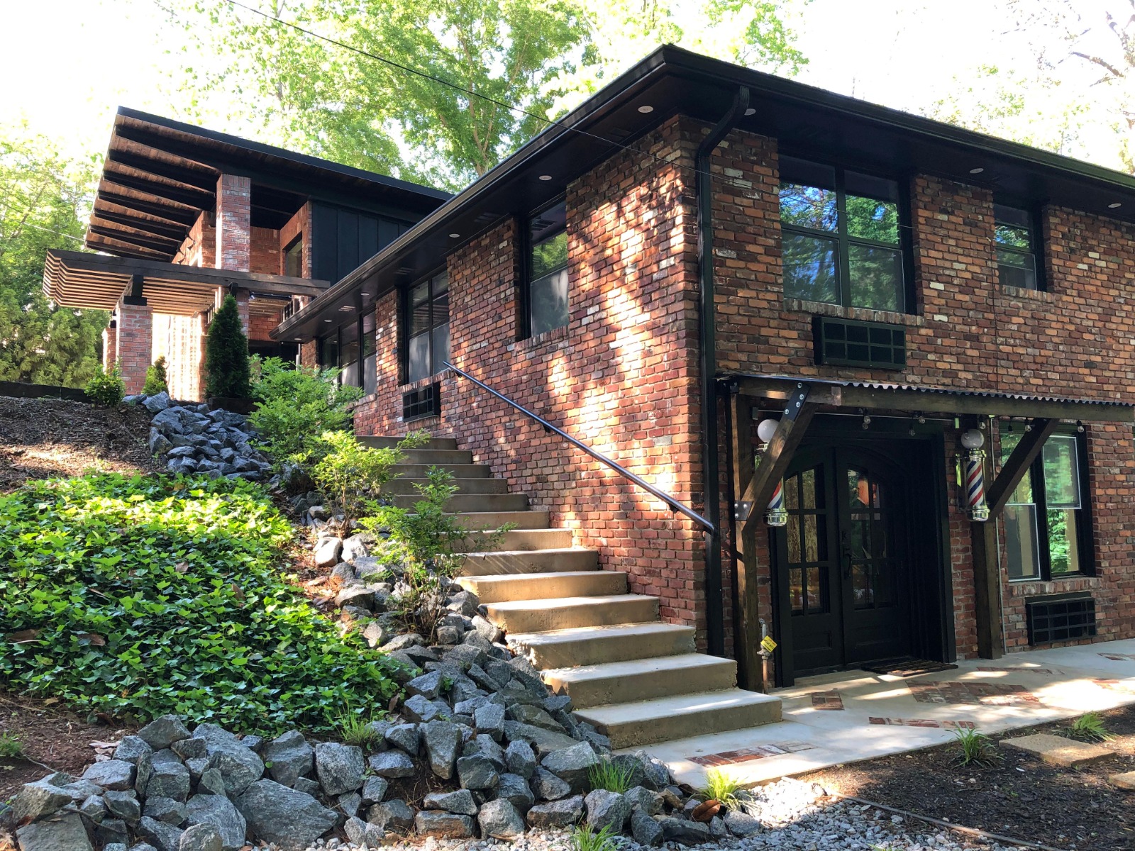 The landscaping around the building was carefully planned and executed to enhance both functionality and aesthetics. New elements such as pathways, green spaces, and outdoor seating areas were added to create a welcoming and functional outdoor environment.