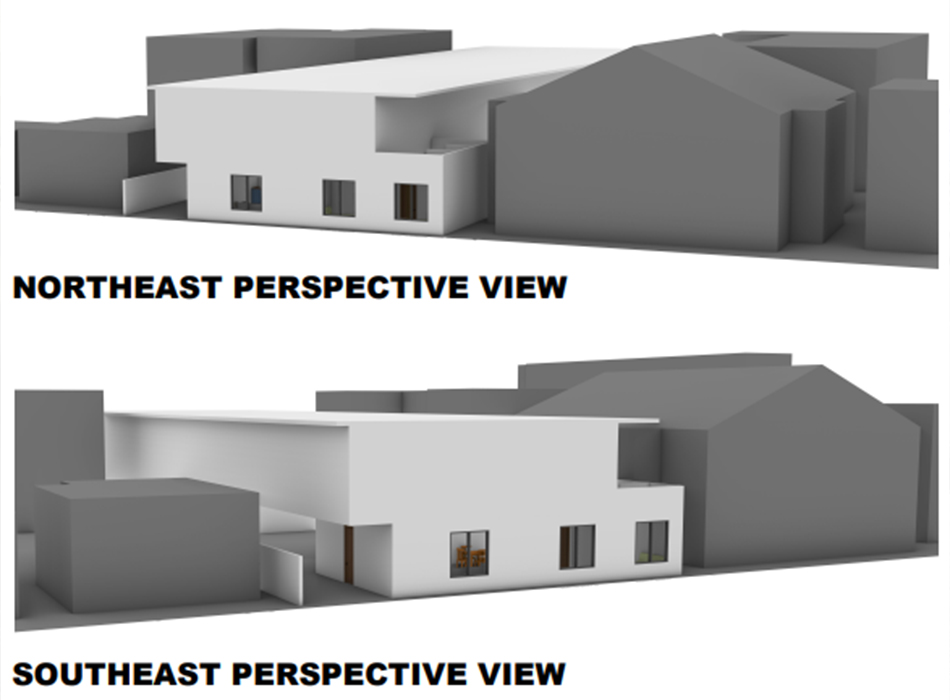 The new ADUs use white stucco finishes that match the existing main house, creating a clean and consistent exterior appearance. Window placement, fencing, and paved walkways are designed to provide natural light, privacy, and clear, organized access throughout the site.
