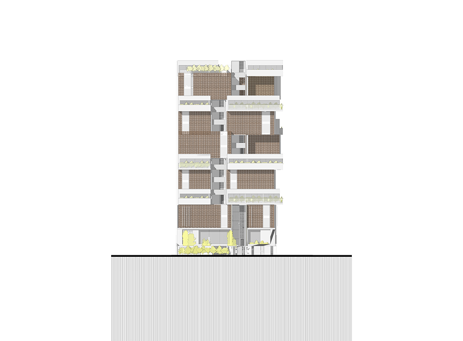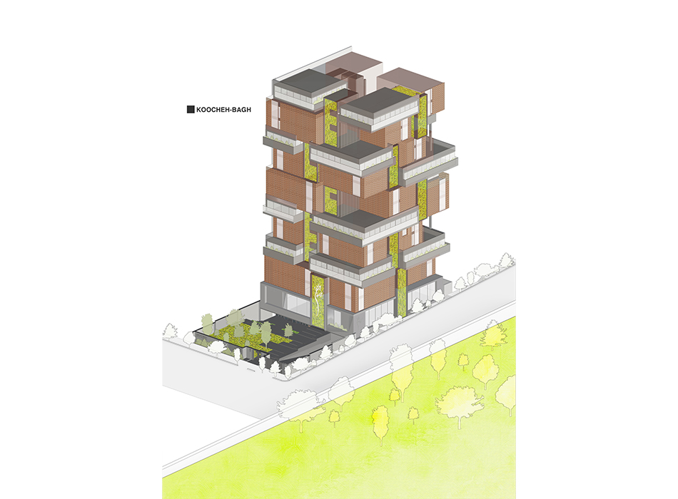 This project redefines the relationship between architecture, nature, and community. Drawing inspiration from the traditional Kooche-Bagh of Shemiran, the design seamlessly integrates natural elements with built spaces to create a living environment that is both functional and poetic. The building's brick facade pays homage to the modest heritage of the region while blending harmoniously with lush greenery. Trees of varying shapes and sizes adorn the site, casting their shadows across the courtyard and evoking the comforting essence of authentic Iranian homes. The large courtyard, defined by short mesh walls, extends an open invitation to passers-by, offering a moment of respite beneath the building's shade. This design approach breaks away from conventional high-walled enclosures, emphasizing openness and inclusivity while fostering a sense of shared space and community interaction.