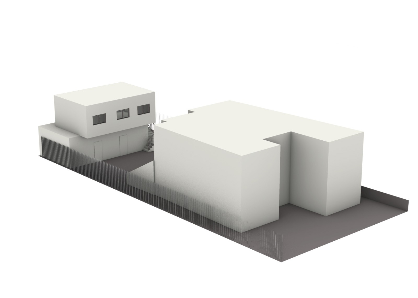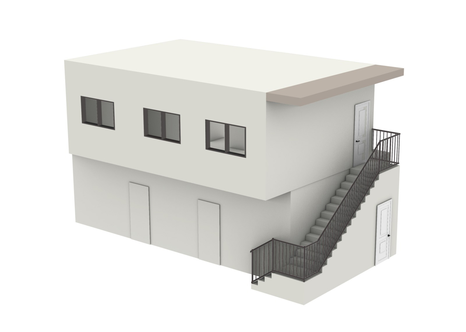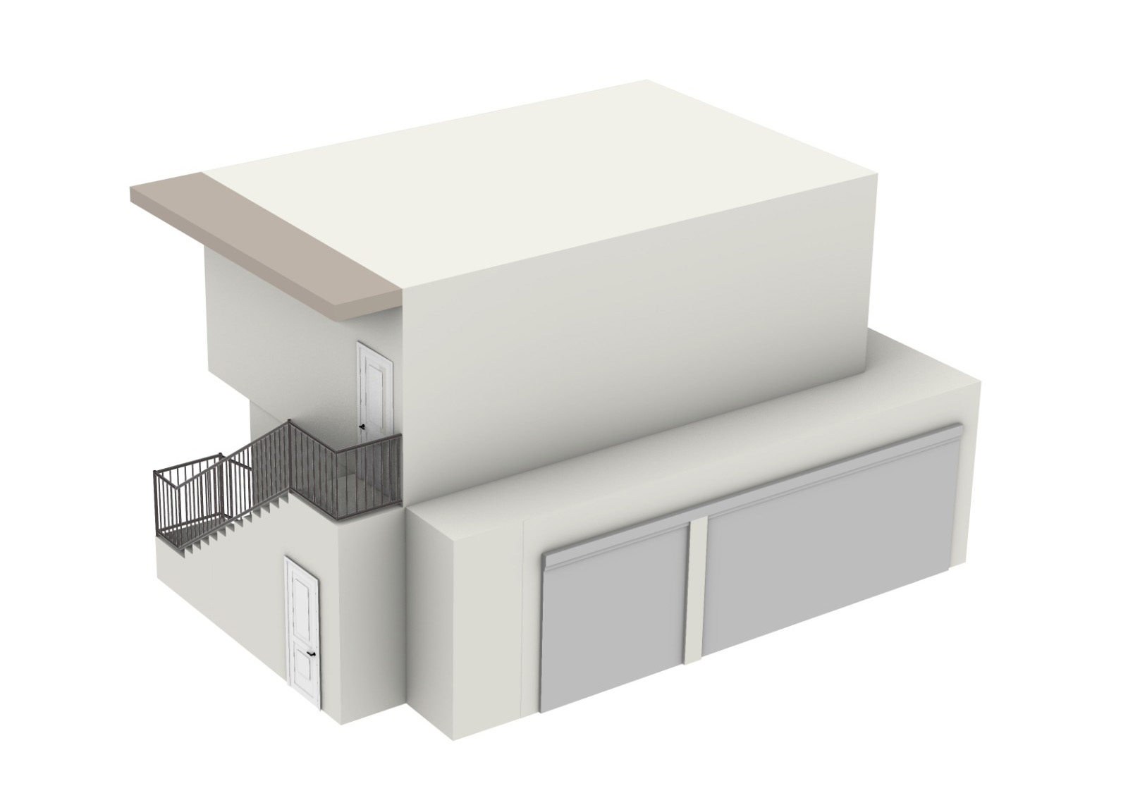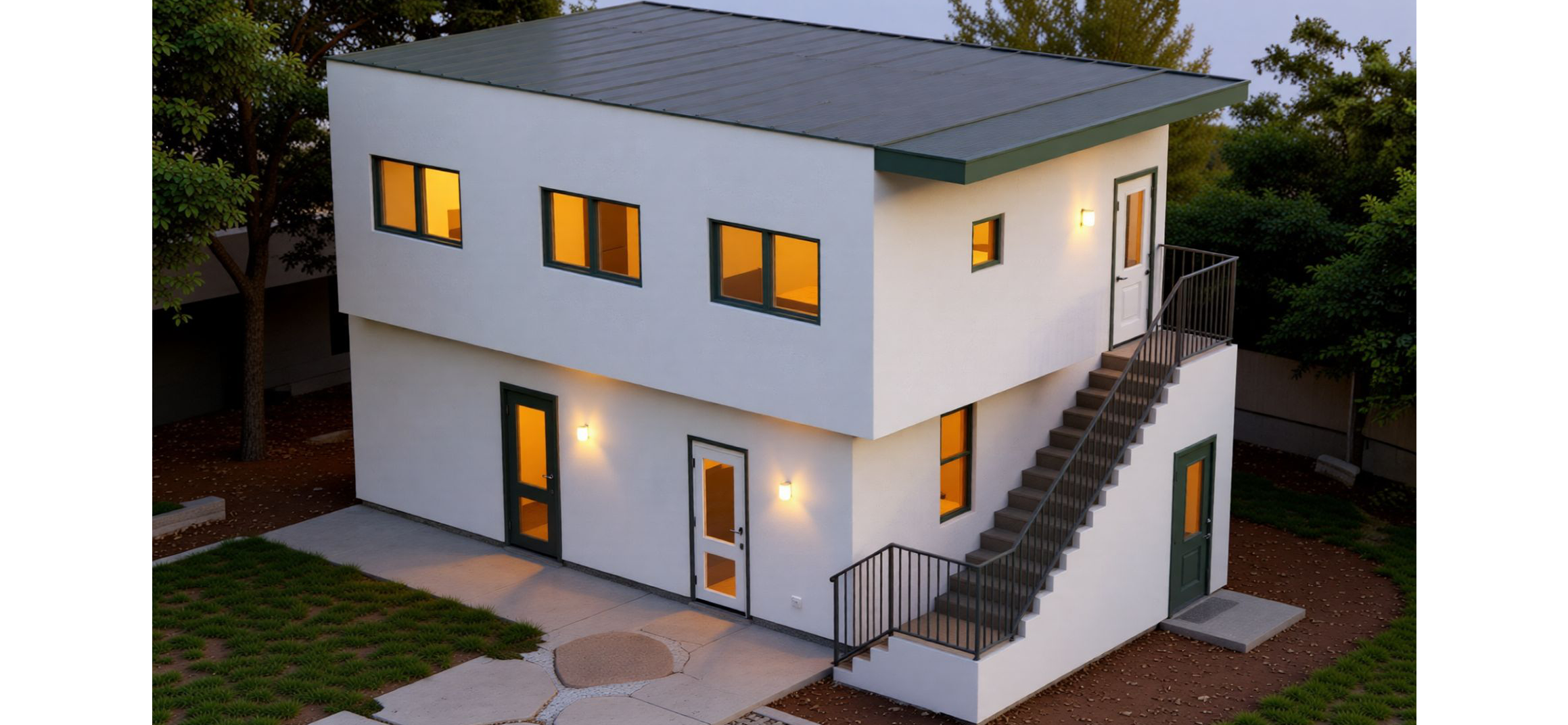 ● The exterior finished in smooth, semi-matte off-white stucco matching the main house..